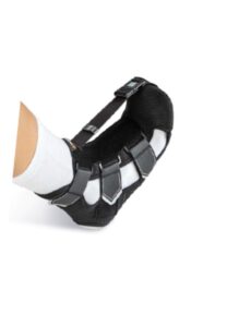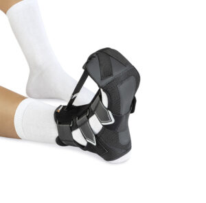 • A pressão da ortótese é conferida pela banda frontal ajustável que vai do topo da zona dorsal até aos dedos dos pés.